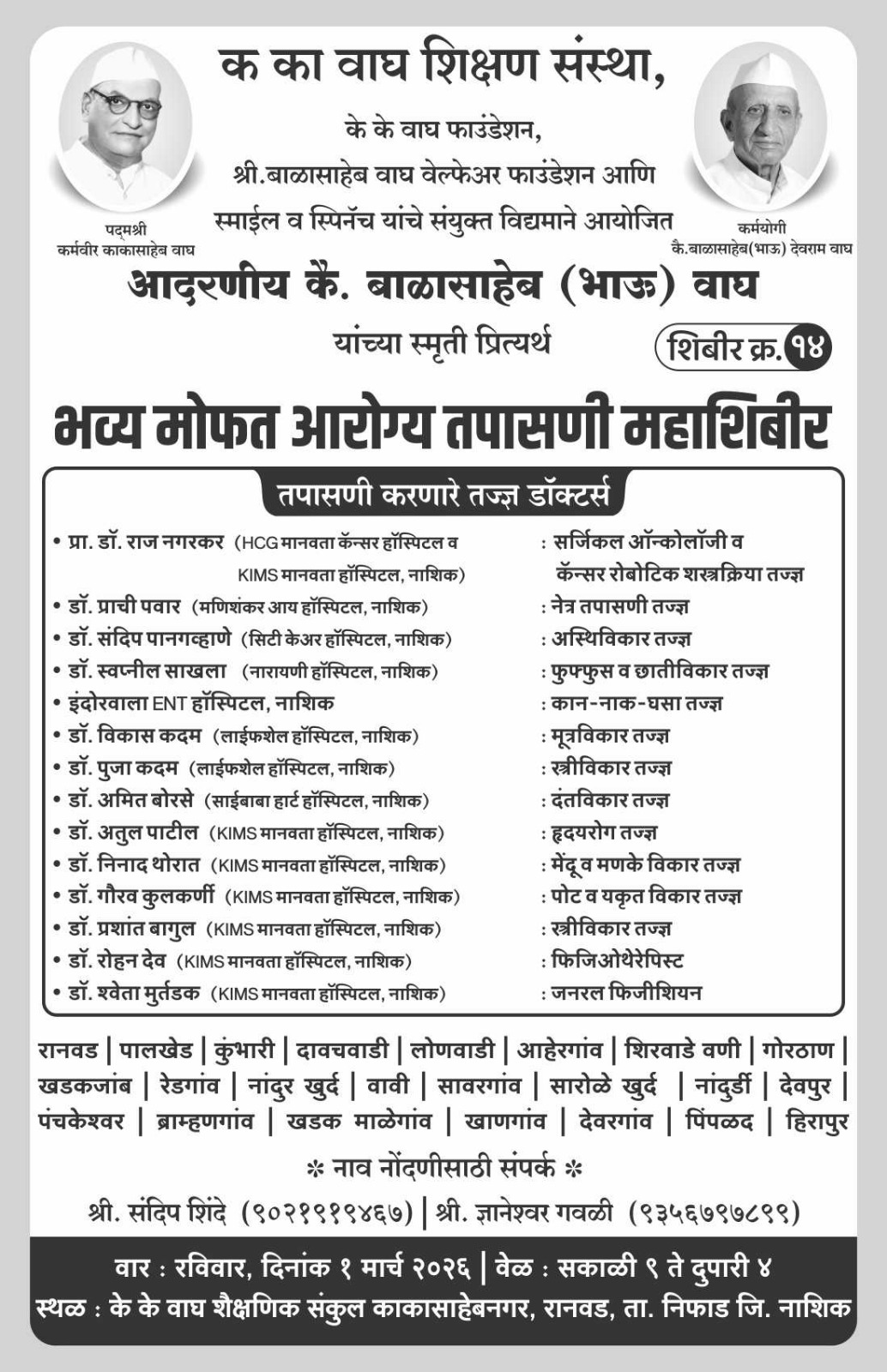 Health Checkup Camp 01 March 2026 at Various Places